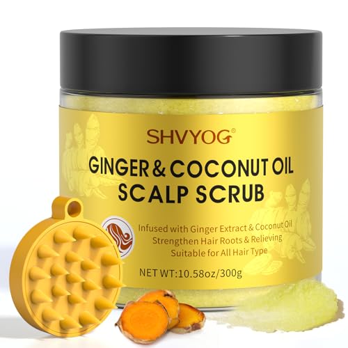 SHVYOG Scalp Scrub, Ginger Scalp Exfoliator, Scalp Exfoliator Scrub for Build Up, Hair Stenghten Hair Treatment Nourishing Detox Hair Care with Scalp Massager, 10.58 OZ
