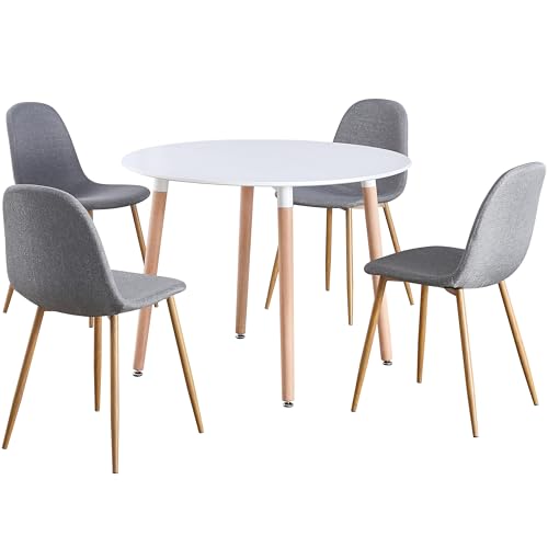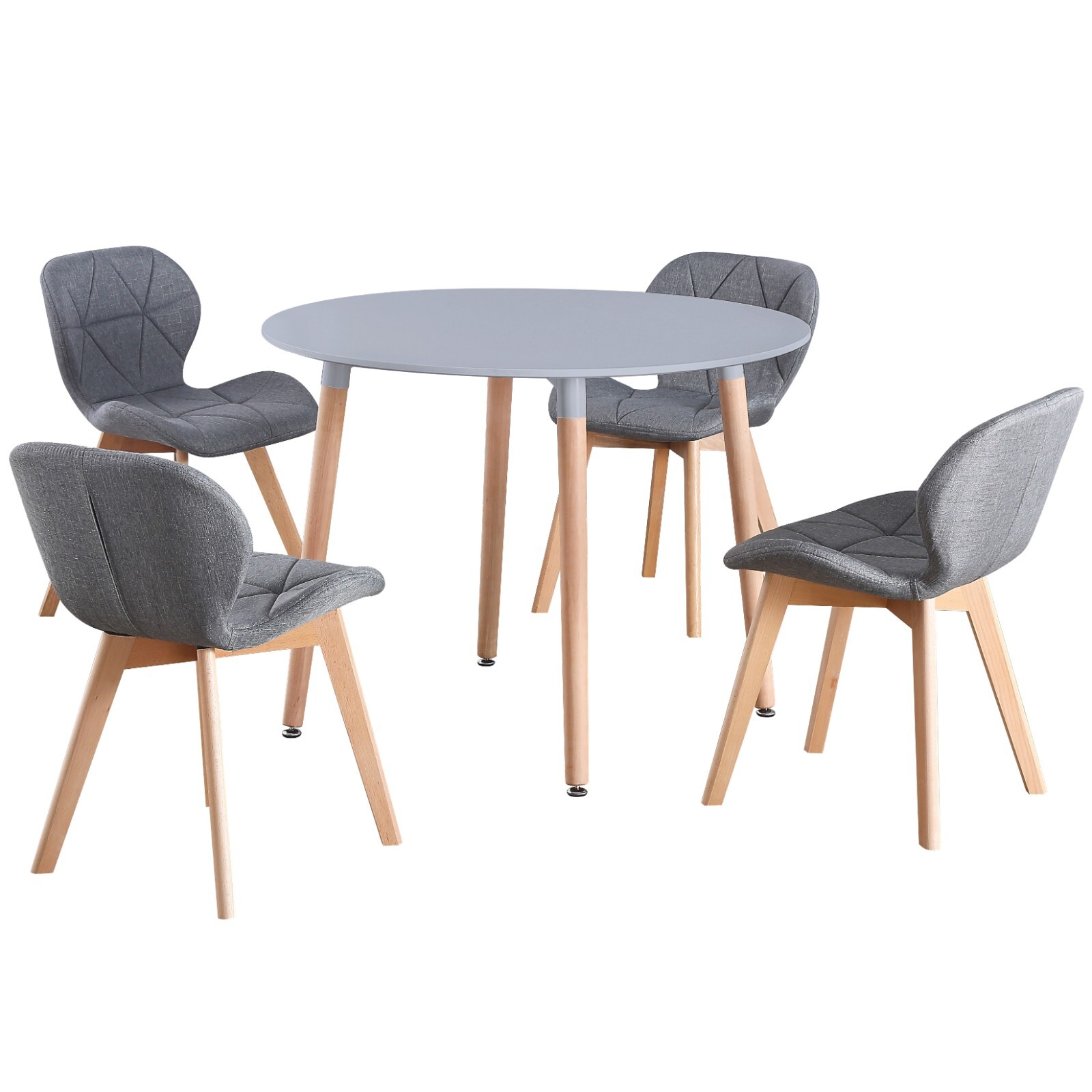 Round 4 Seat Grey Dinner Table and Grey Fabric Chair Scandi Kitchen Dining Set