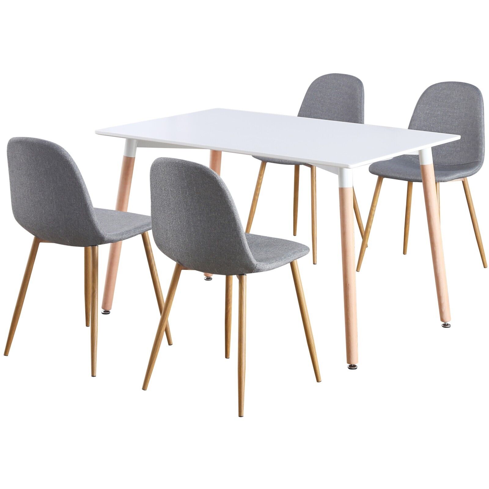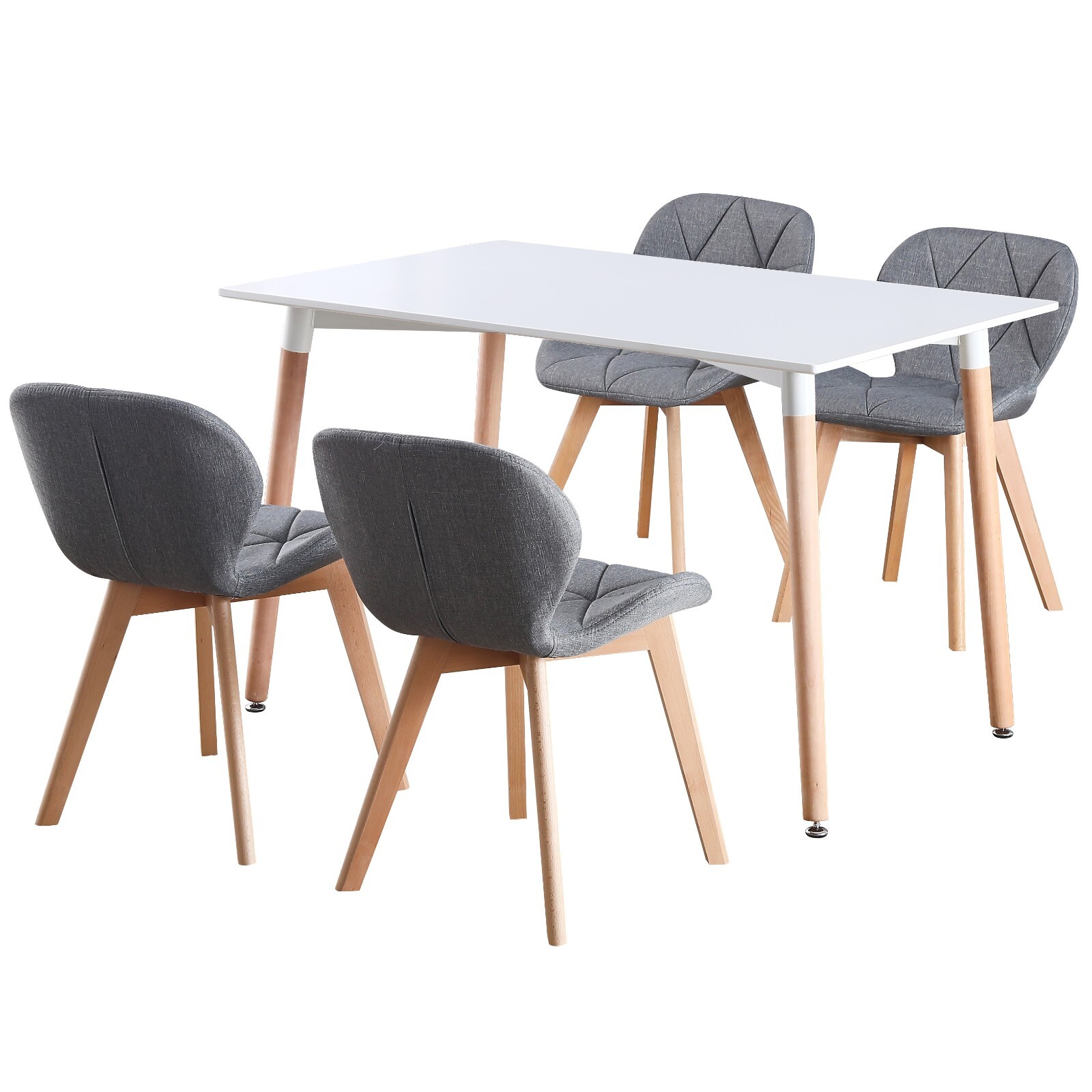 4 Seat White Dinner Table and Grey Fabric Chair Scandi Kitchen Nordic Dining Set