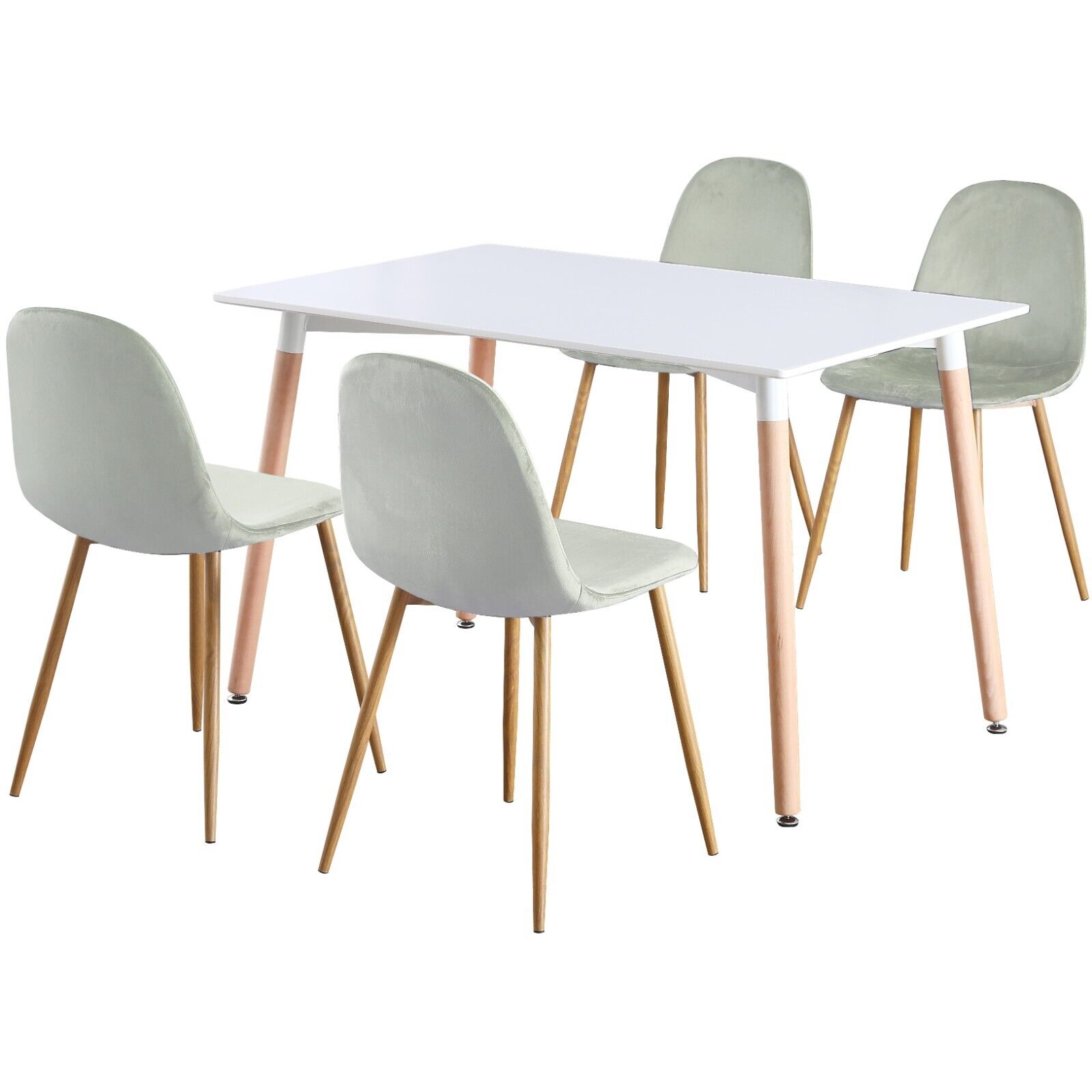 4 Seat White Dinner Table and Grey Velvet Chair Scandi Kitchen Nordic Dining Set