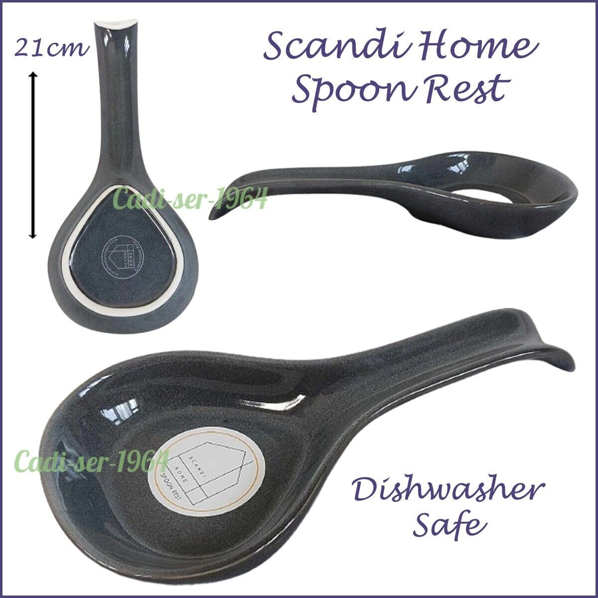 Scandi Home Spoon Rest 21cm Grey Ceramic Kitchen Utensils Dishwasher Safe NEW