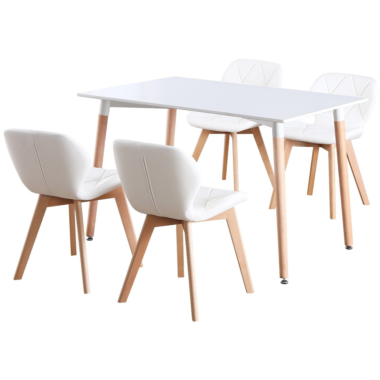 4 Seat White Dinner Table and White Faux Leather Chair Scandi Kitchen Dining