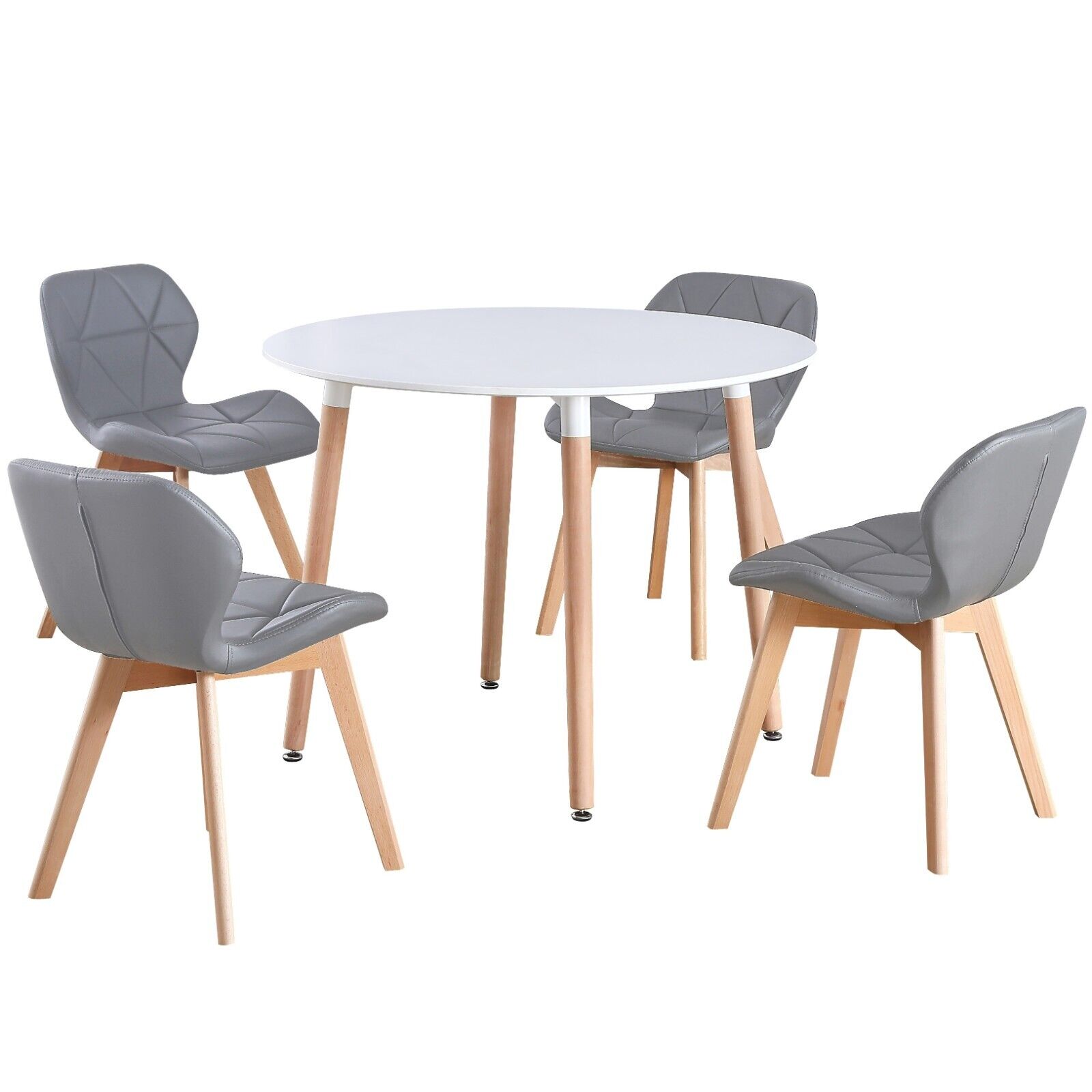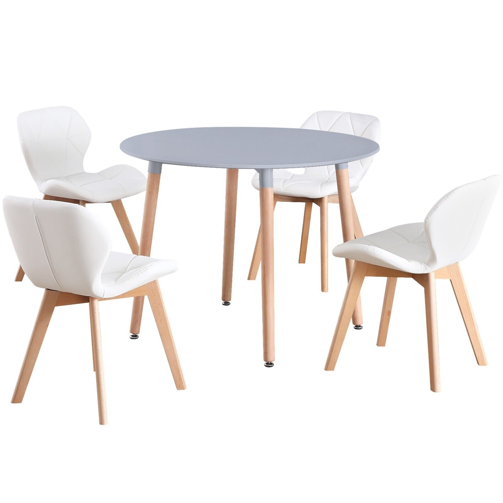 Round 4 Seat Grey Dinner Table & White Faux Leather Chair Scandi Kitchen Dining