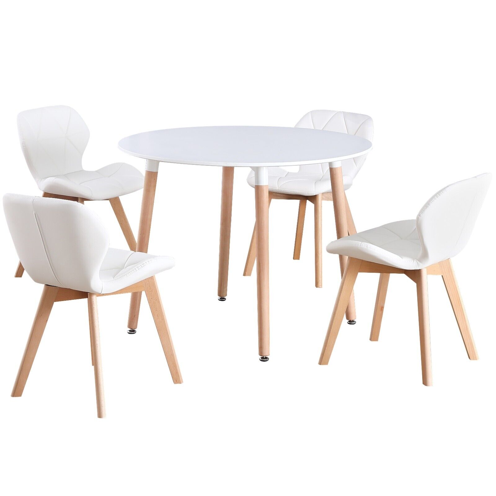 Round 4 Seat White Dinner Table & White Faux Leather Chair Scandi Kitchen Dining