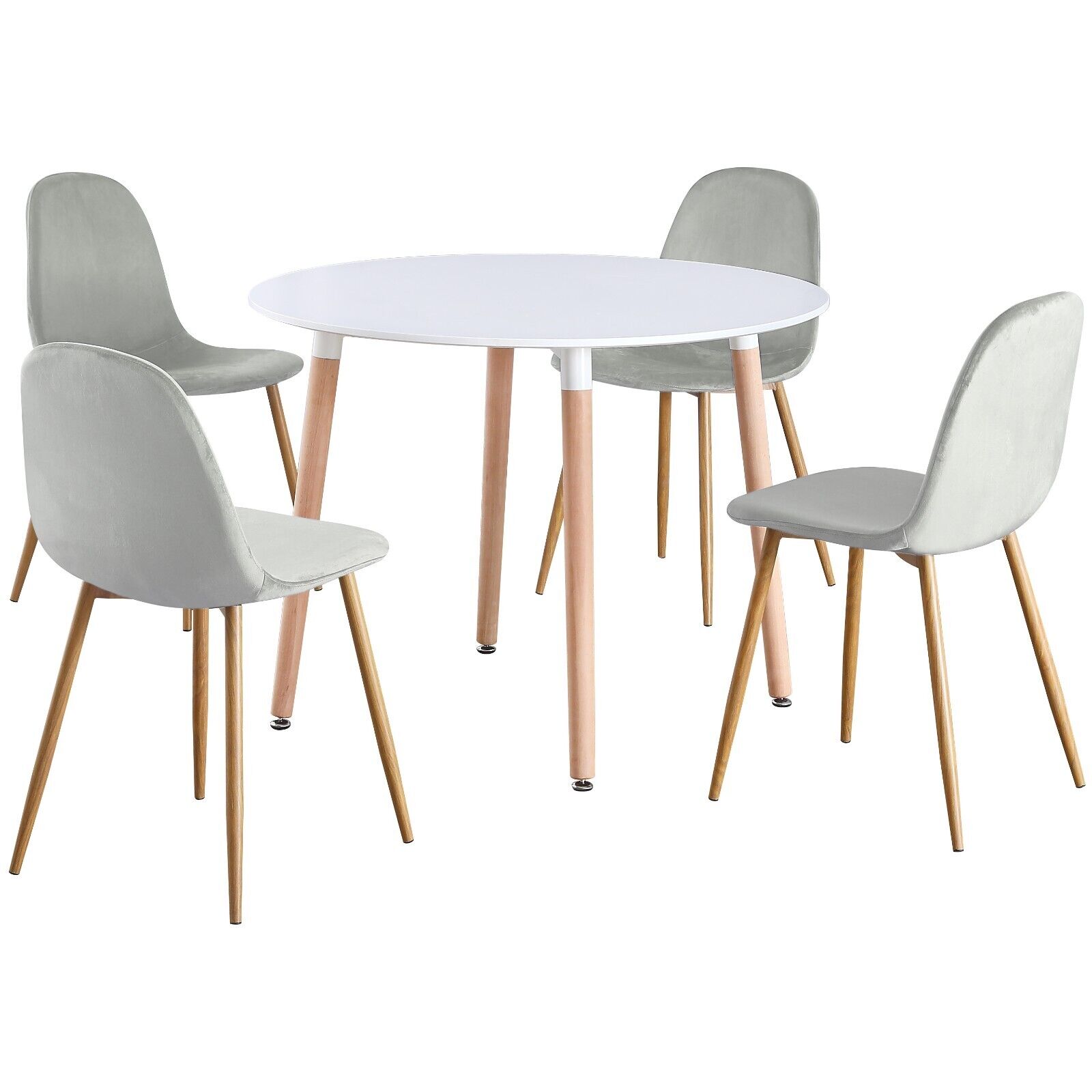Round 4 Seat White Dinner Table and Grey Velvet Chair Scandi Kitchen Dining Set