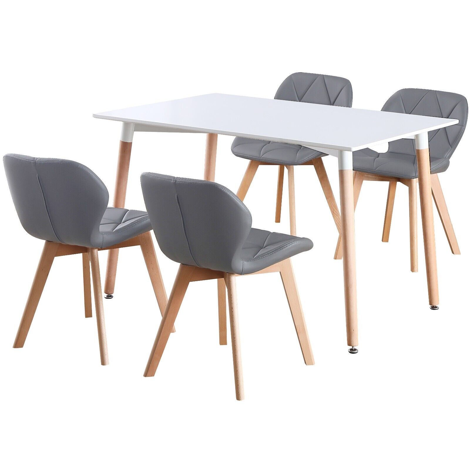 4 Seat White Dinner Table and Grey Faux Leather Chair Scandi Kitchen Dining