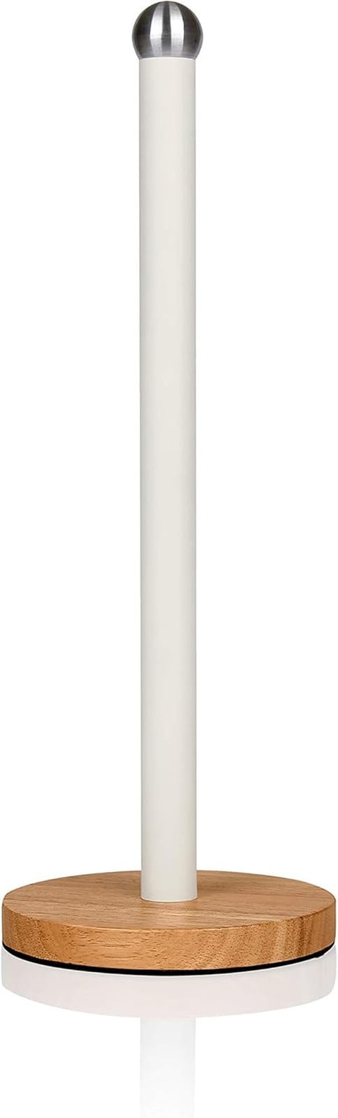 Swan SWKA17511WHTN Nordic Scandi Towel Pole/Kitchen Roll holder with Non-slip Wooden Base, Cotton White, Steel, One Size
