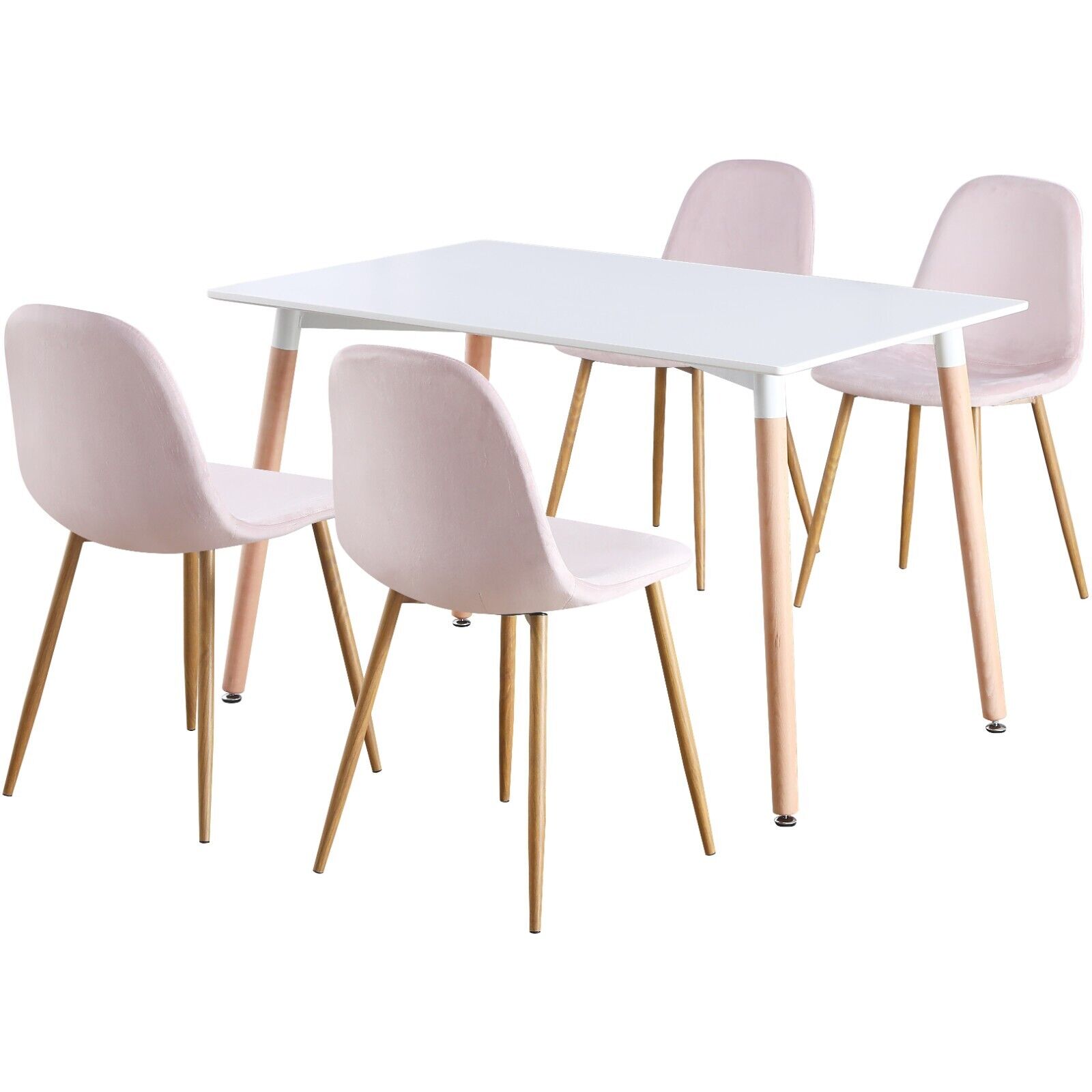 4 Seat White Dinner Table and Pink Velvet Chair Scandi Kitchen Nordic Dining Set