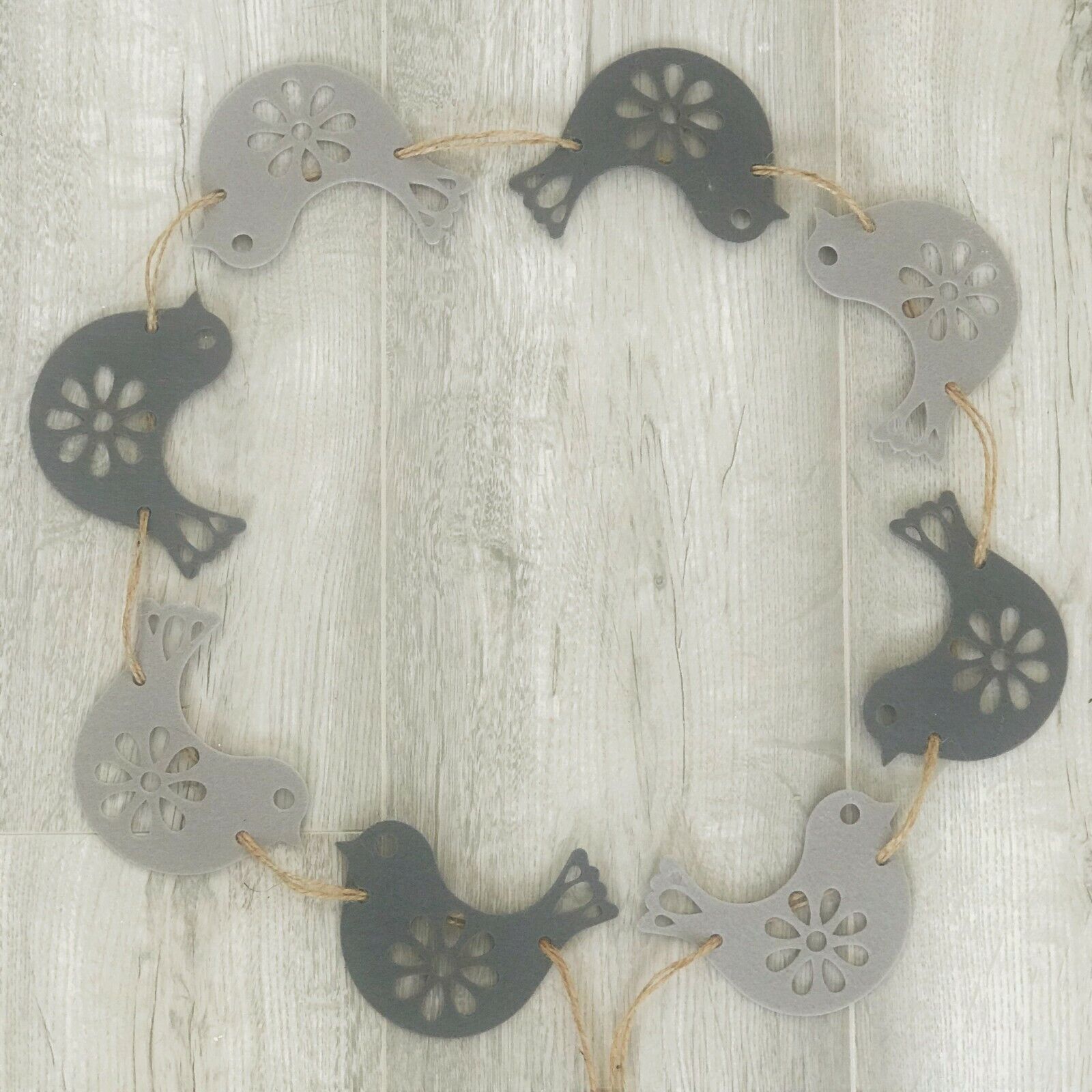 GREY FELT BUNTING,GARLAND,8 SCANDI STYLE BIRDS,KITCHEN,HOME DECOR, 2.5 METRES