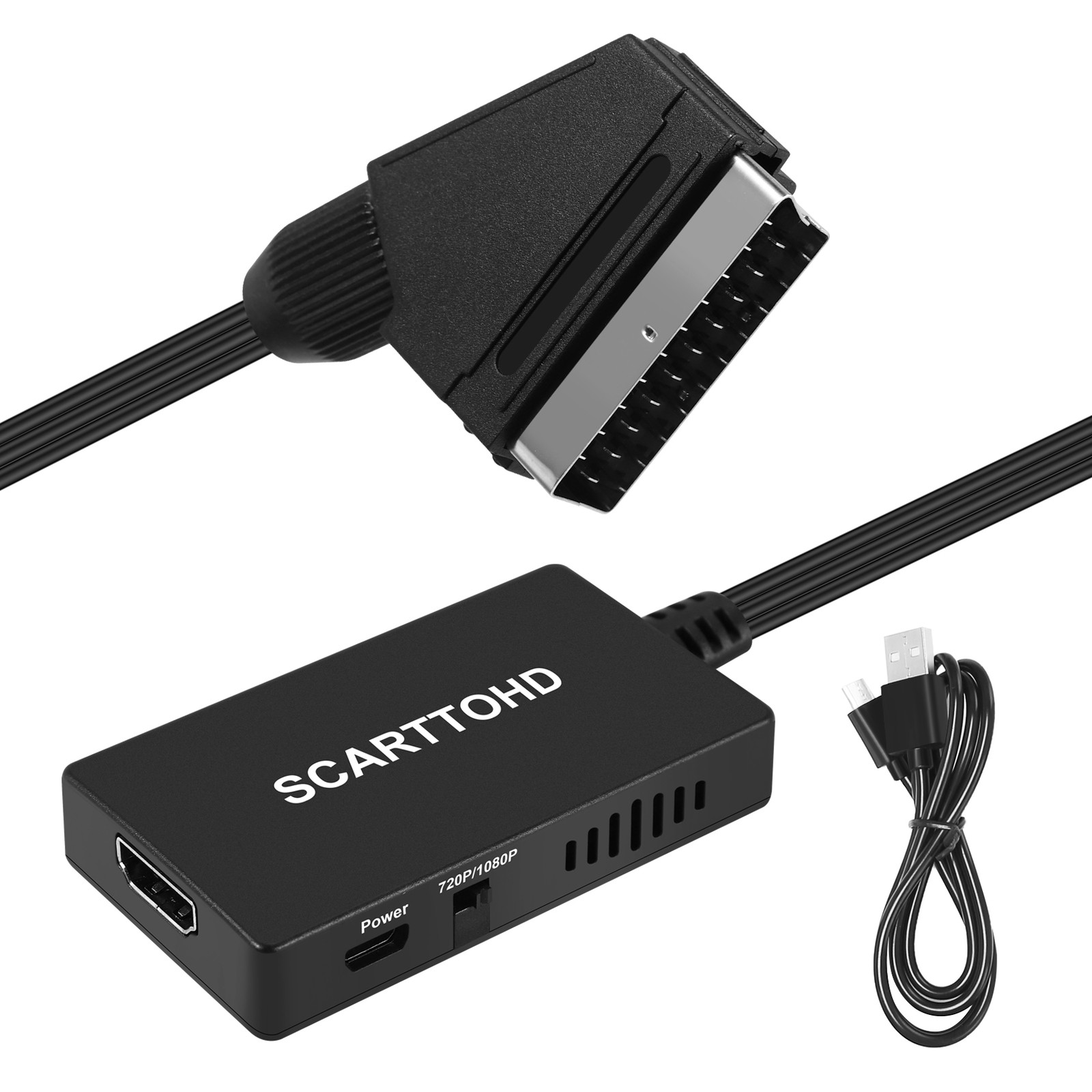 Scart to HDMI Converter Cable With 720P/1080P Switch - Adapter for TV, Monitor, Projector - Video Converters for VHS, DVD Player, STB, Xbox, Wii, PS2, PS3 to TV