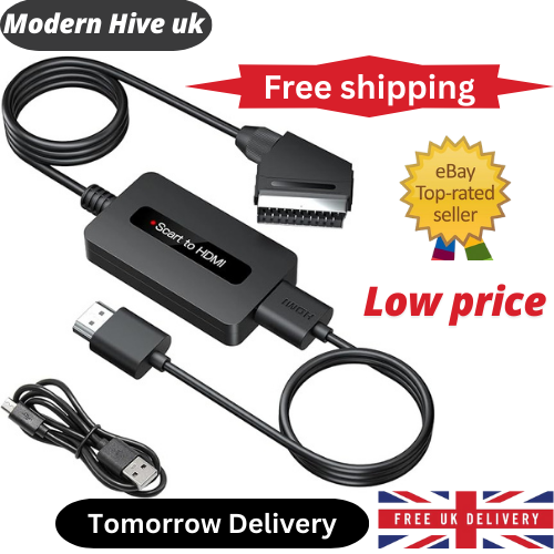 SCART to HDMI Converter 1080P – AV to HDMI Adapter with USB Power Cable