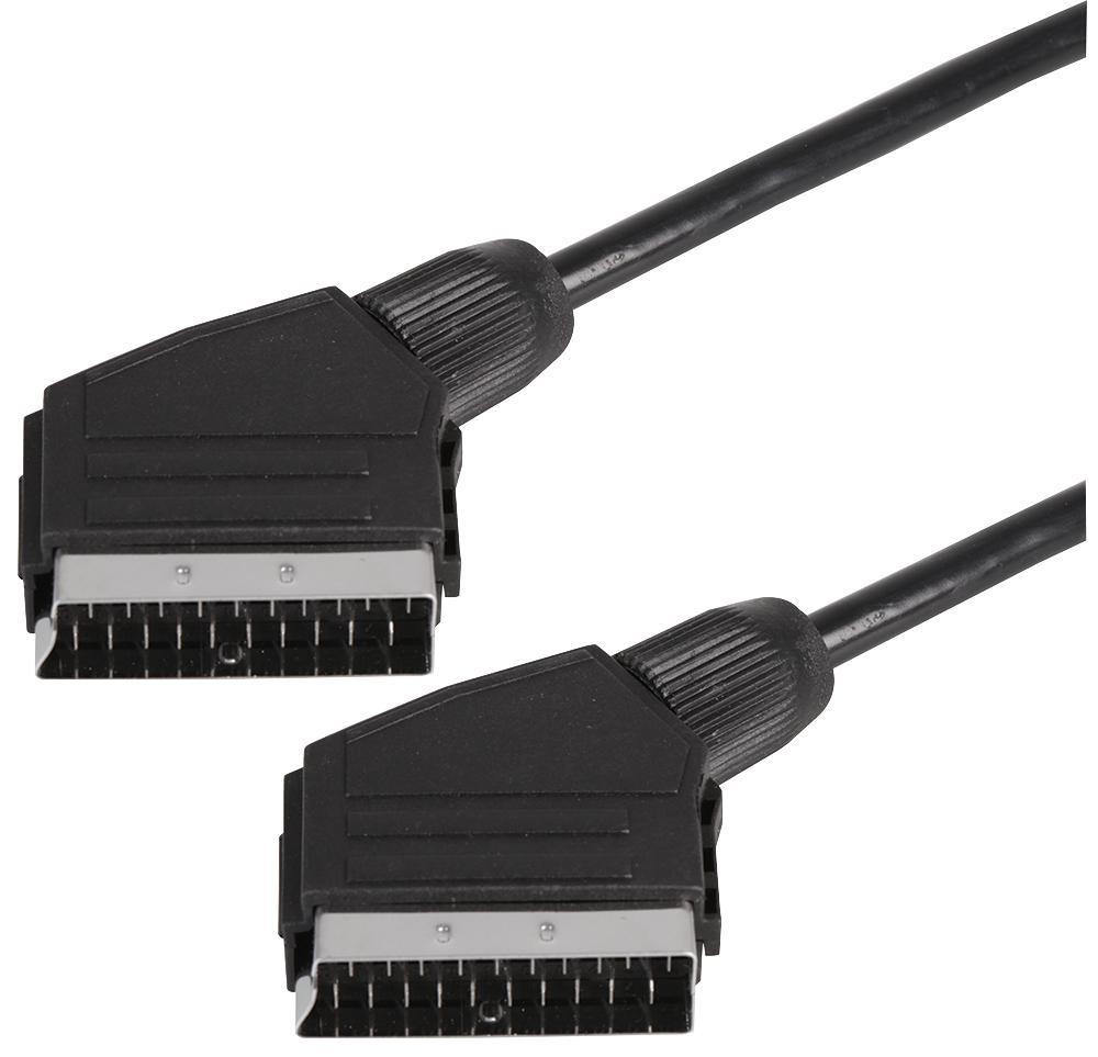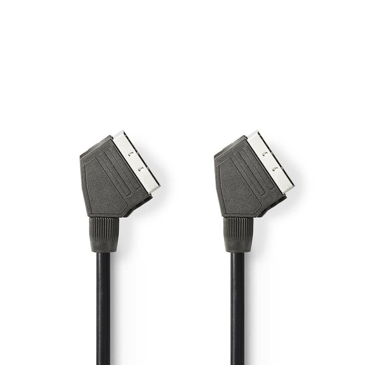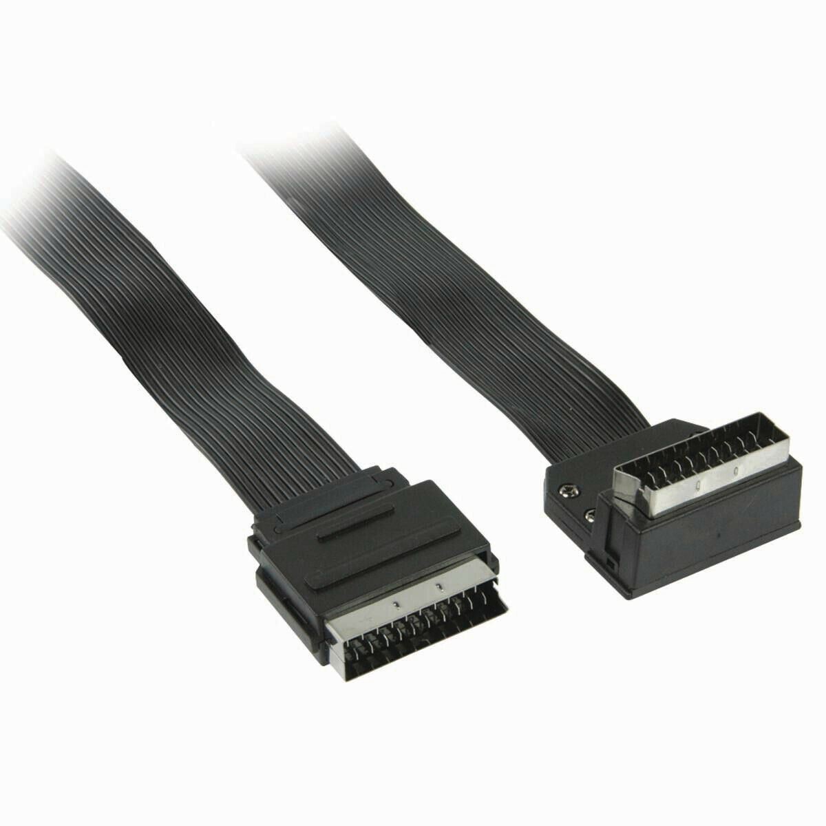Nedis Flat 2m Scart Cable Lead to Scart Hooked Angle 270 Degree Right Angled for Connection TV, DVD, Game Console