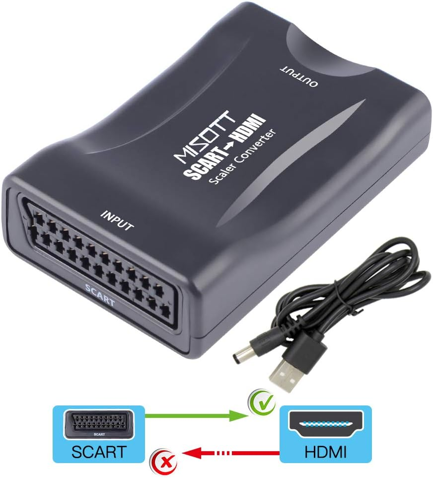 MISOTT Scart to HDMI Converter - HDMI Adaptor for TV, Power Plug Included