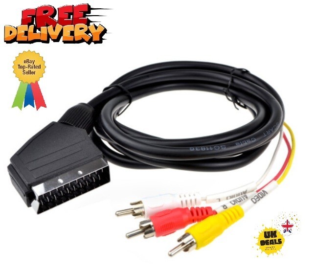1.8m Scart to RCA Triple 3 x Phono Cable Audio Video Lead for Nintendo