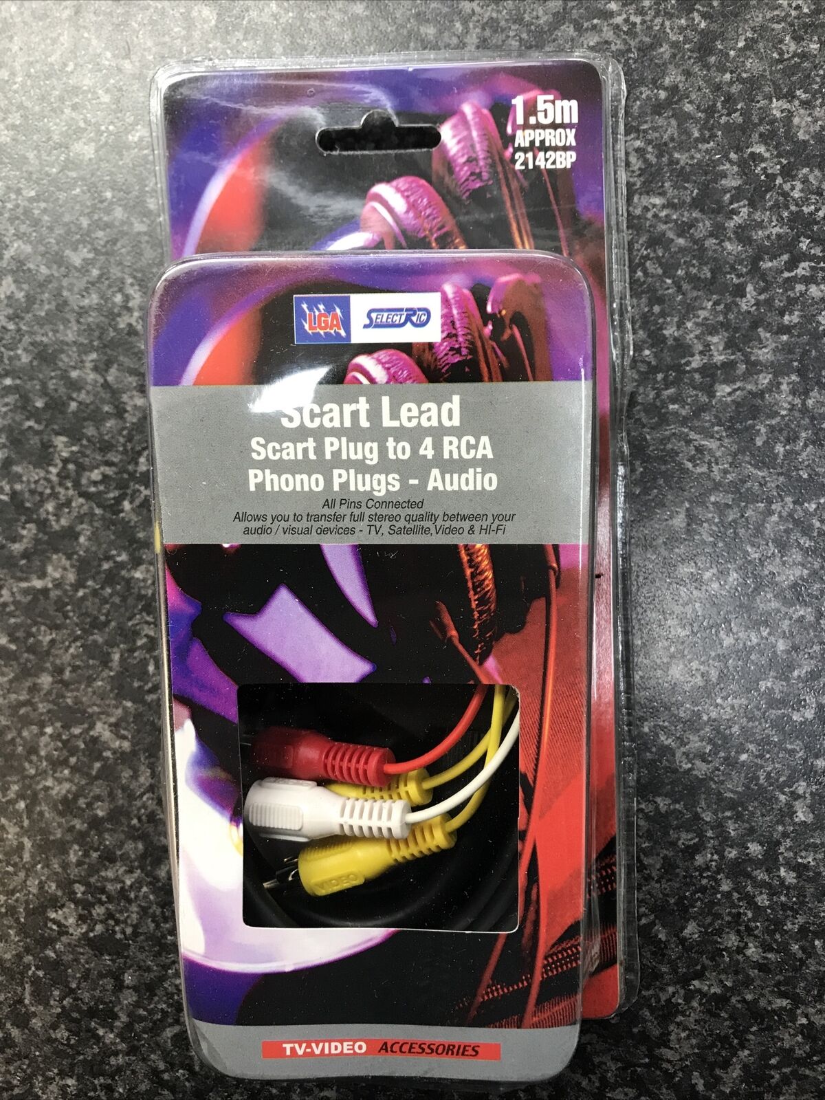 1.5m SCART to SCART and 3 x RCA Triple Phono Audio Breakout Video Cable Lead