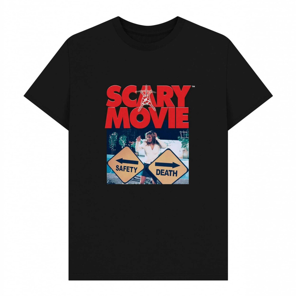 (L, Black) Scary Movie Unisex Adult Safety Vs Death T-Shirt