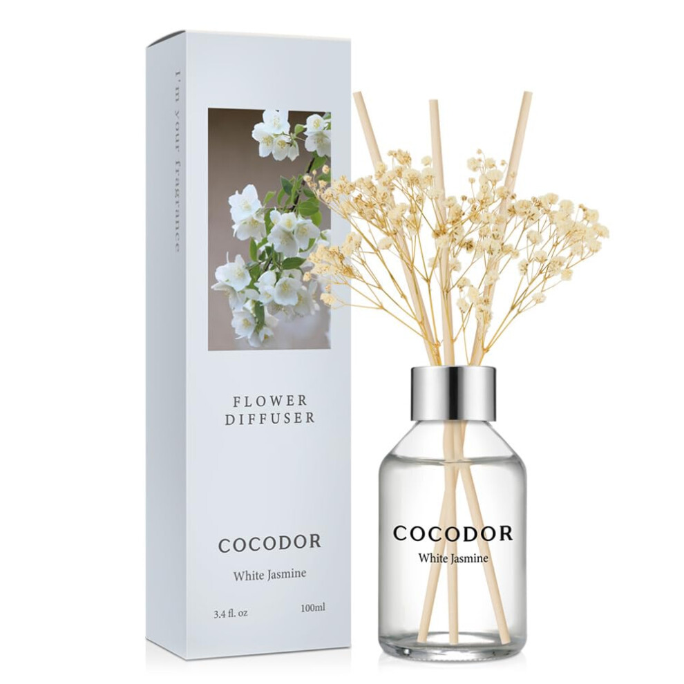 COCODOR Flower Reed Diffuser Set / 3.4oz / White Jasmine/Scent Diffuser with Sticks Home Fragrance Reed Diffuser for Bathroom Shelf Decor