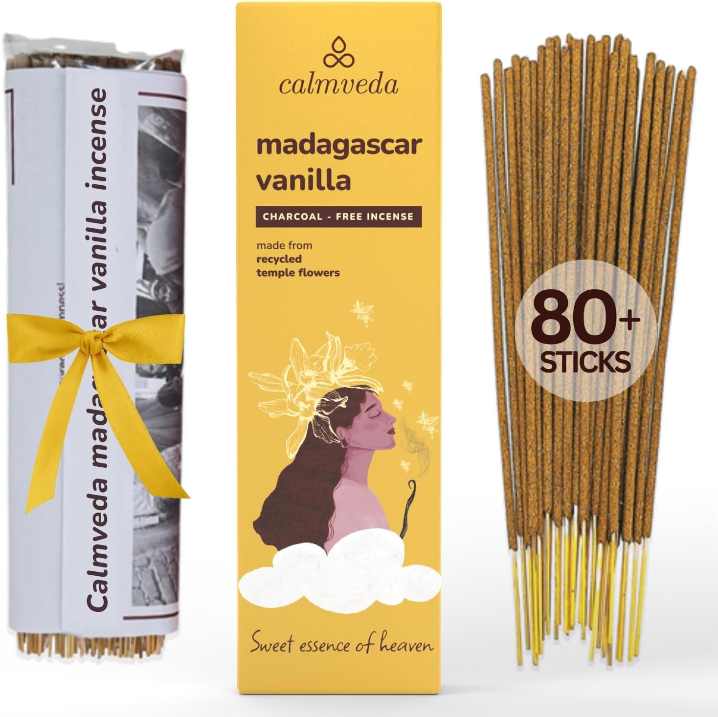 Madagascar Vanilla Incense Sticks Warm - (80 Scent Sticks) Charcoal Free, Made from Upcycled Flowers | Sweet, Cozy-Warm & Earthy Notes | Relaxing Incense & Healing Incense Sticks