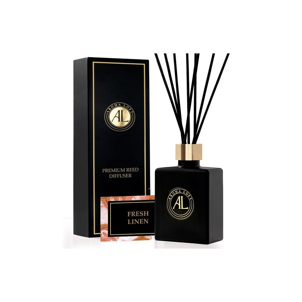 Fresh Linen Reed Diffuser Set - Oil Room Scent Sticks - Non-Toxic Bathroom Diffuser with 5oz Oil - Black Reed Diffusers for Home & Office - Elega
