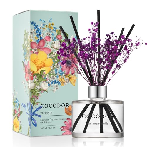 COCODOR Flower Reed Diffuser set / 6.7oz / Cashmere Vanilla/Scent Diffuser with Sticks Home Fragrance Reed Diffuser for Bathroom Shelf Decor