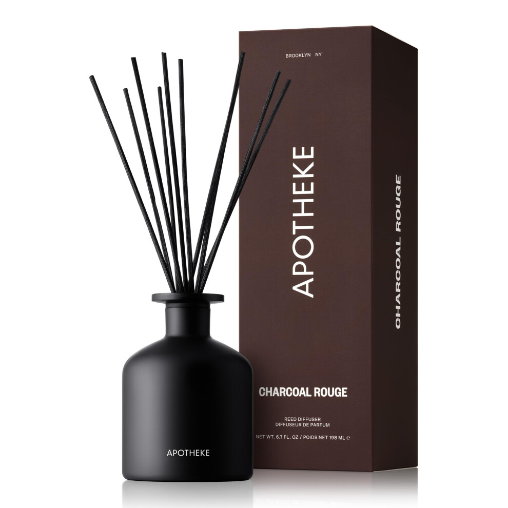 Apotheke Luxury Scented Reed Diffuser for Home Charcoal Rouge - 6.7 Fl Oz Essential Oil Aromatherapy - 10 Rattan Scent Sticks Room Diffuser - Lo