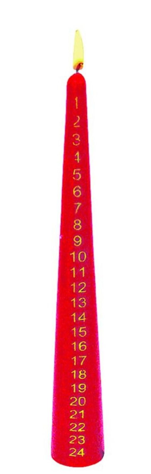 Christmas Advent Candle 15cm Cone Countdown Calendar - Red