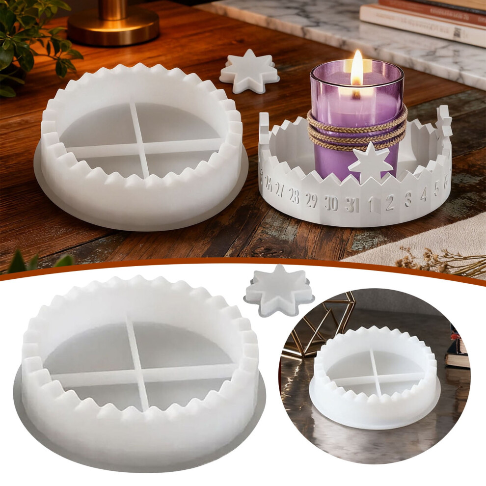 1PC Silicone Advent Calendar Candle Holder Mold with Star Ornament â DIY Resin/Plaster/Clay Mold, Circular Tray for Home Decor & Christmas Crafts