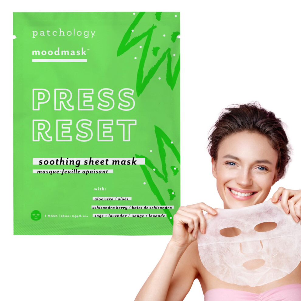 Patchology Soothing Face Mask - Press Reset Soothing Sheet Mask with Aloe Vera Lavender and Schisandra Berry helps revitalize your face by impro