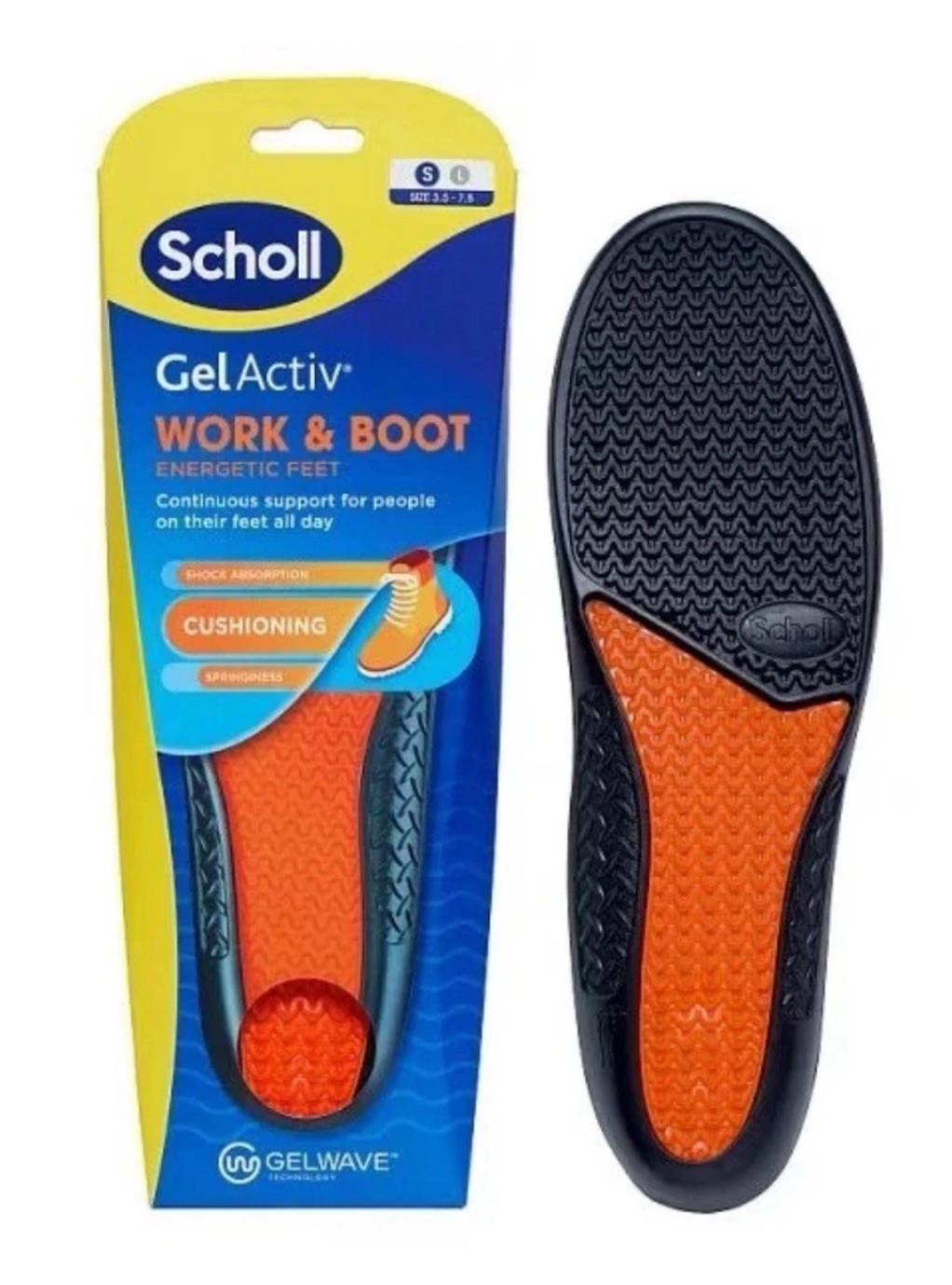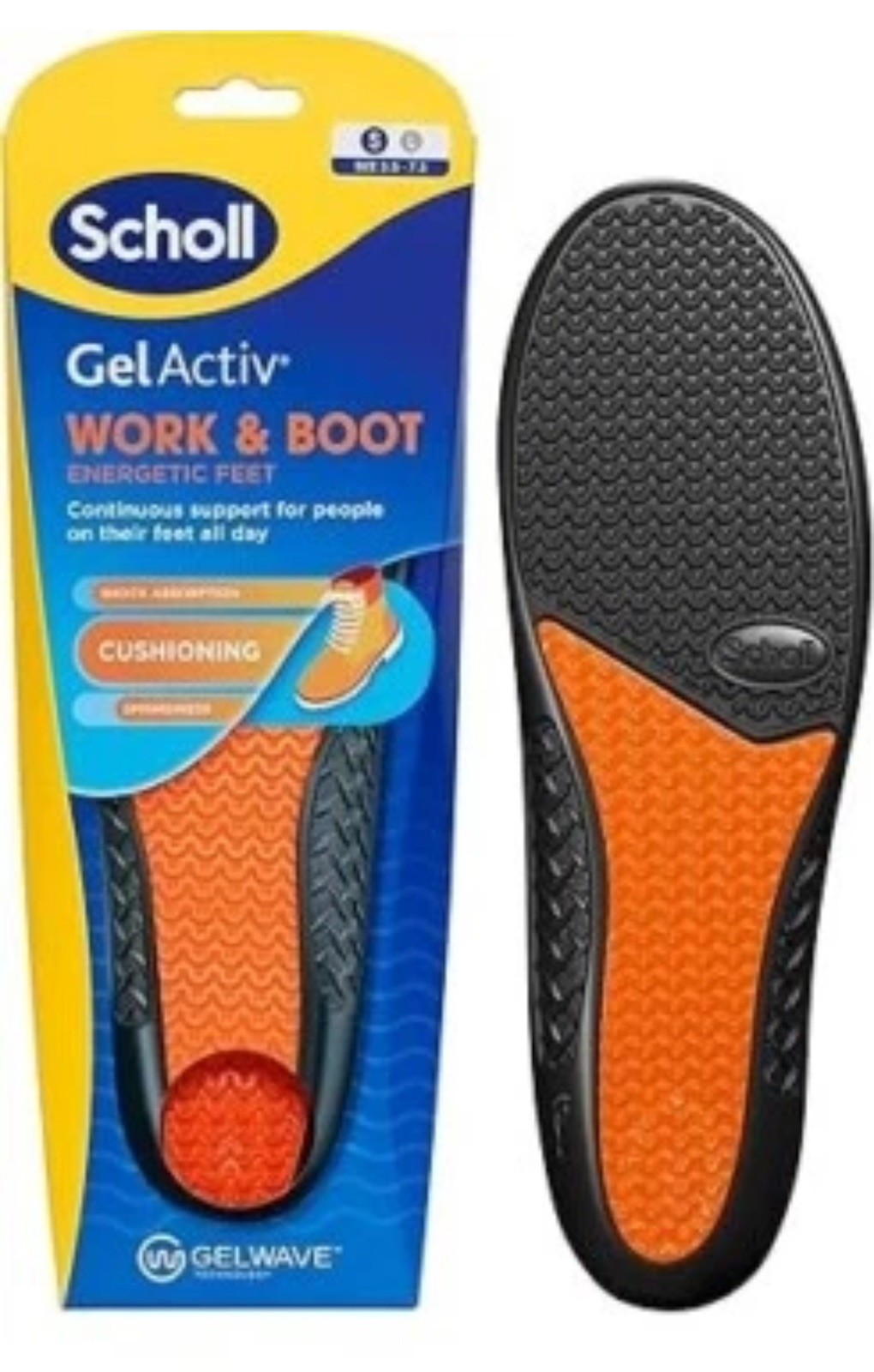 Scholl Gel Active Work & Boot Insoles Shoes Men Gelwave Shock Absorber Cushion