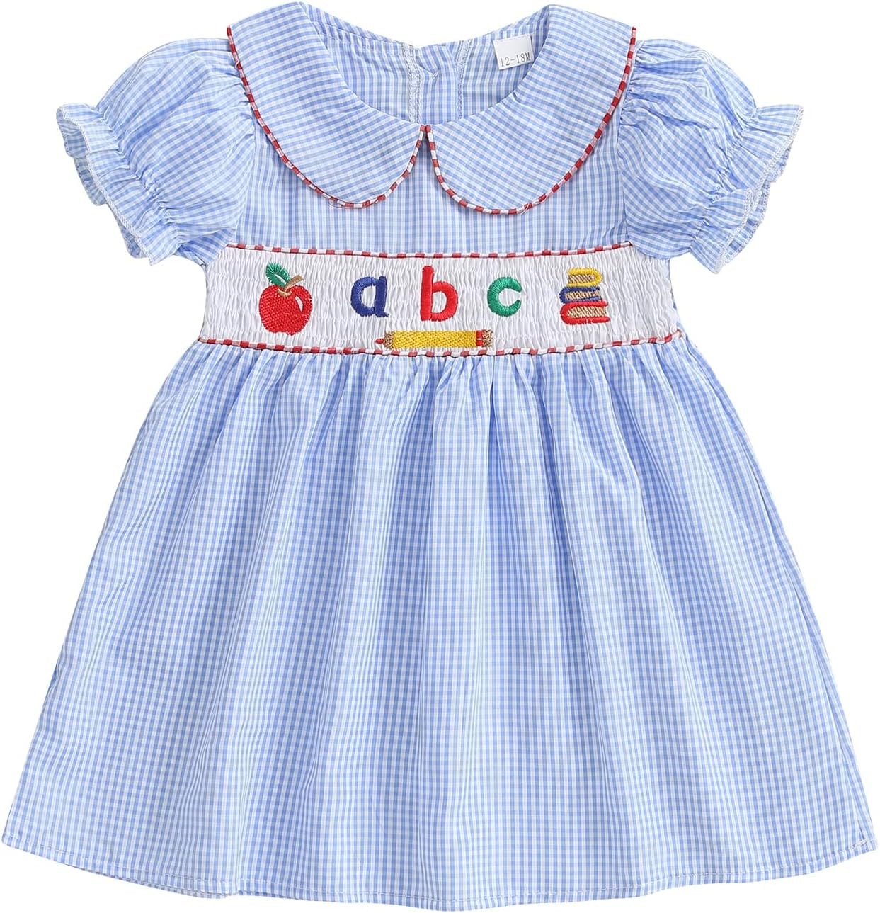 Geagodelia Kids Girls My First Day of School Dresses 3-4 Years, Gingham Blue