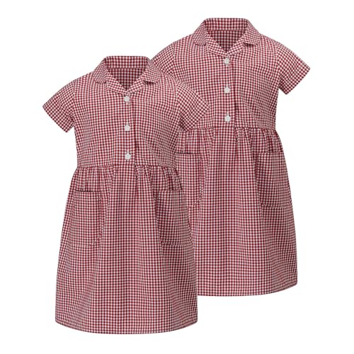 Trutex Basics 2 Pack Blue Gingham School Dresses for Girls (3-12 Years). School Summer Dress with Pockets. School Uniform & Pinafores - Genuine School Uniform Red 6 Years