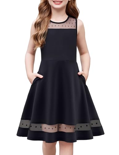 Arshiner Dress Girls Formal Summer Dress Children Black Mesh Dress Sleeveless A-Line Party Dress School Enrollment Dresses Casual Dress with Pockets 5-6 Years