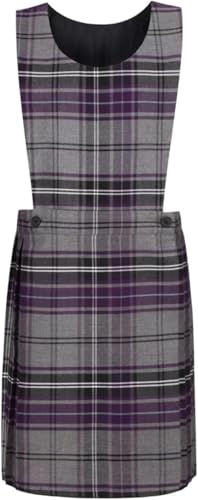 Pretty Attitude Girls Pinafore School Uniform Dress, Sleeveless Tartan Dress, Wrap-Over Bib and Knife Pleats School Dresses for Girls, Age 2-16 Years (UK, Age, 15 Years, 16 Years, Purple/Grey)