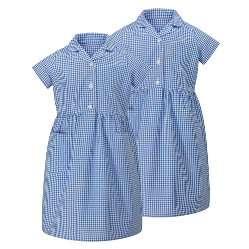 Trutex Basics 2 Pack Blue Gingham School Dresses for Girls (3-12 Years). School Summer Dress with Pockets. School Uniform & Pinafores - Genuine School Uniform Blue 6 Years