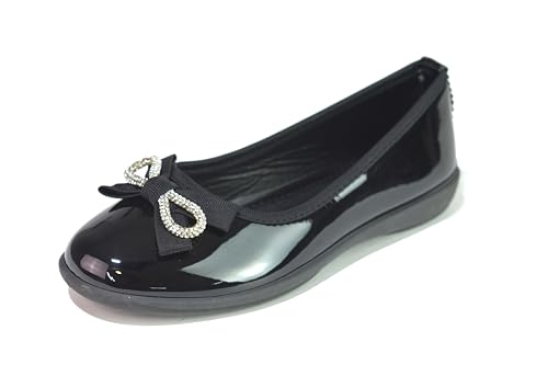 Girls Diamante Black Shoes Kid Casual Slip on Closed Toe Comfortable Easy Fasten Girls Summer School Dress Shoes Size 10-3