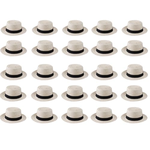Pack of 25 Straw Boater Hat Bulk Job Lot Budget Straw Boater With Black Ribbon Summer Hat School Dance Show Fancy Dress Accessory