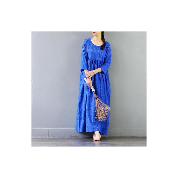 Summer Unbranded Dress O-neck Empire Three Quarter Ankle-Length Long Cotton for