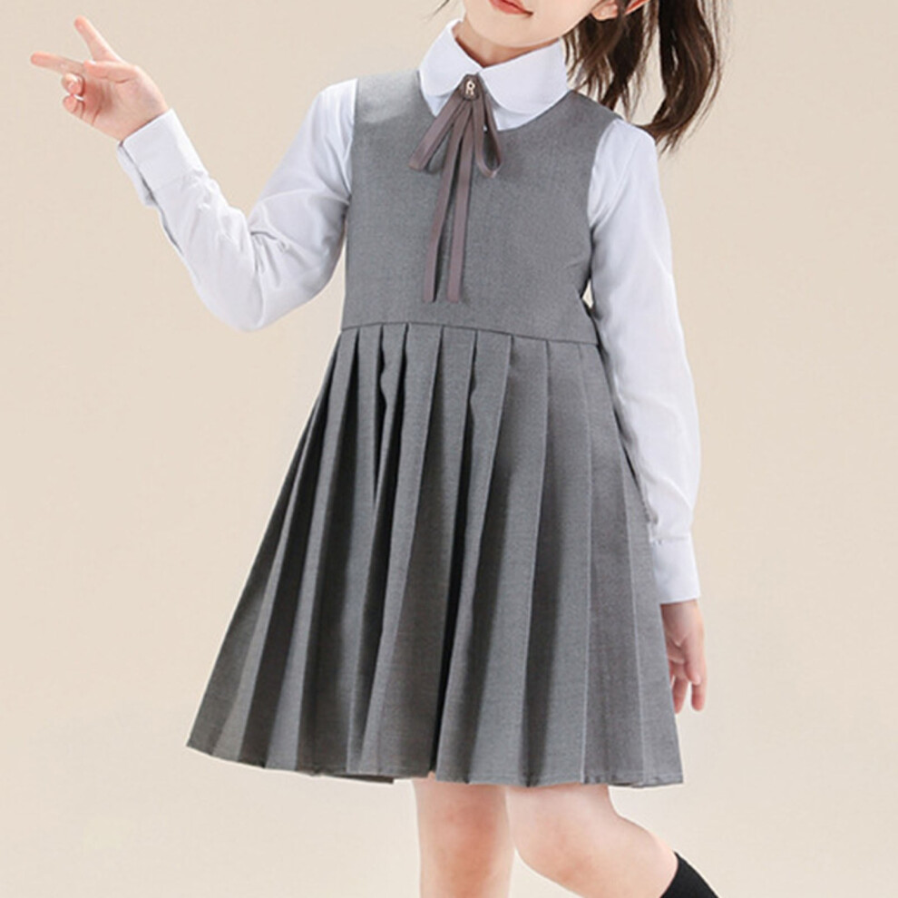 Kids Girls School Uniform Summer Pleated Dress Tank Dress Ruffled Sleeveless Sun Dress Casual Spring Princess Dress Kids Girls Clothes