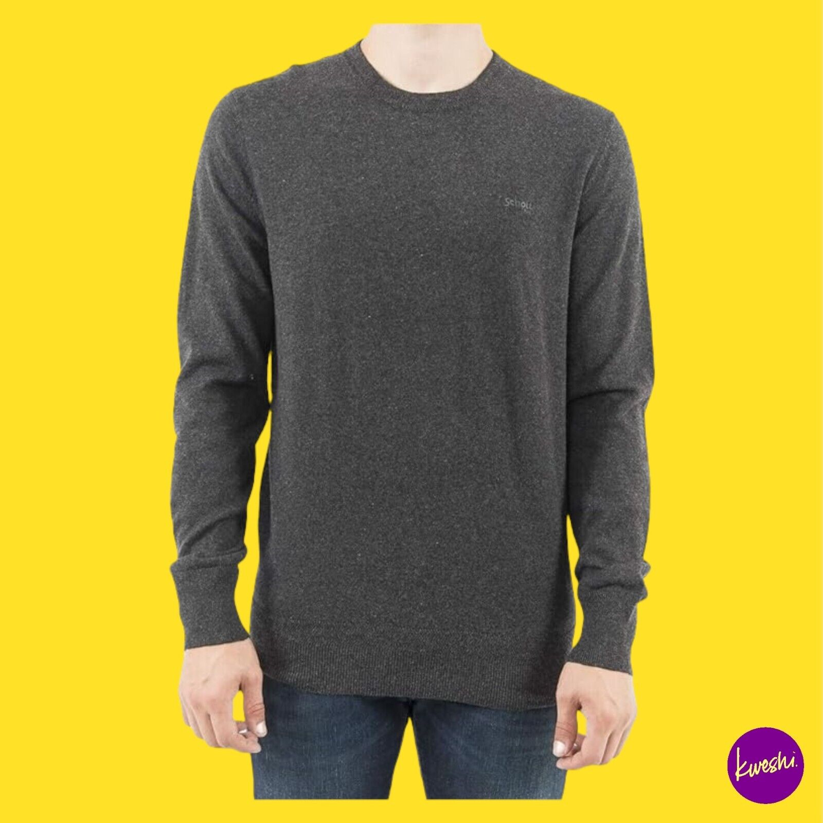 SCHOTT NYC Men's Crewneck Sweater Jumper, Wool Blend, Heather Anthracite, UK S