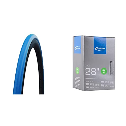 Schwalbe Unisex's Insider Folding Bike Tyre, Blue, 700 x 35 C & AV17 700 x 28-45c (1 1/2-28 x 1.75 Inches) Inner Tube with Schrader Valve