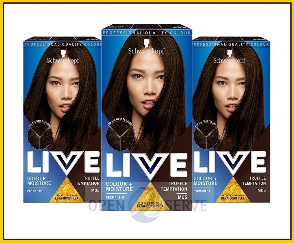 3x Schwarzkopf Live Permanent Hair Dye Moisture + Colour Truffle Temptation M05
