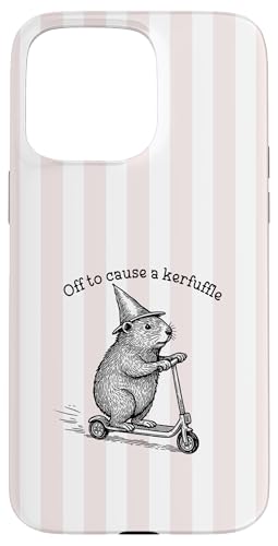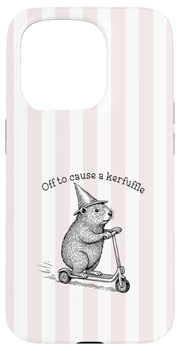 Off to Cause a Kerfuffle Capybara Scooter Pink Striped Case for iPhone 15 Pro