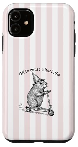 Off to Cause a Kerfuffle Capybara Scooter Pink Striped Case for iPhone 11