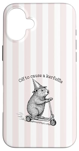 Off to Cause a Kerfuffle Capybara Scooter Pink Striped Case for iPhone 16