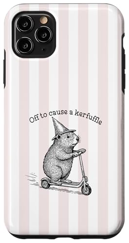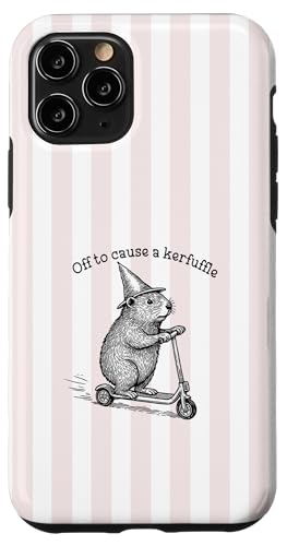 Off to Cause a Kerfuffle Capybara Scooter Pink Striped Case for iPhone 11 Pro