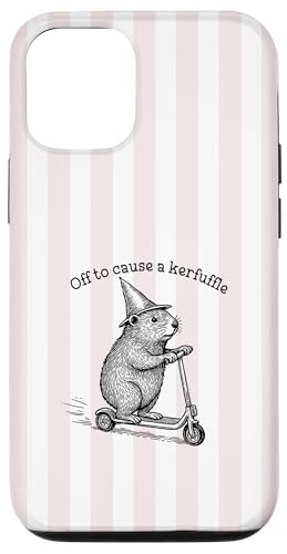 Off to Cause a Kerfuffle Capybara Scooter Pink Striped Case for iPhone 12/12 Pro