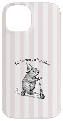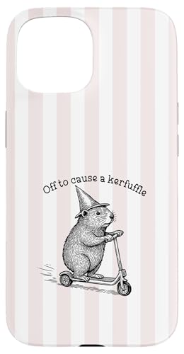 Off to Cause a Kerfuffle Capybara Scooter Pink Striped Case for iPhone 15