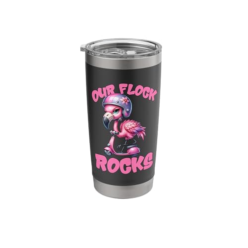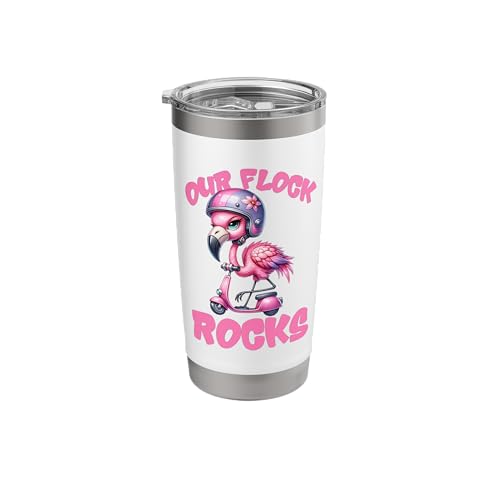 Funny Pink Flamingo Riding A Pink Scooter. Our Flock Rocks Stainless Steel Insulated Tumbler