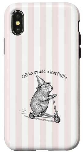 Off to Cause a Kerfuffle Capybara Scooter Pink Striped Case for iPhone XS Max