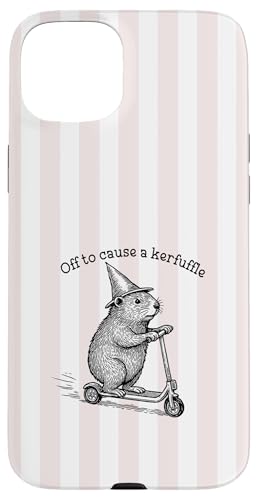Off to Cause a Kerfuffle Capybara Scooter Pink Striped Case for iPhone 15 Plus